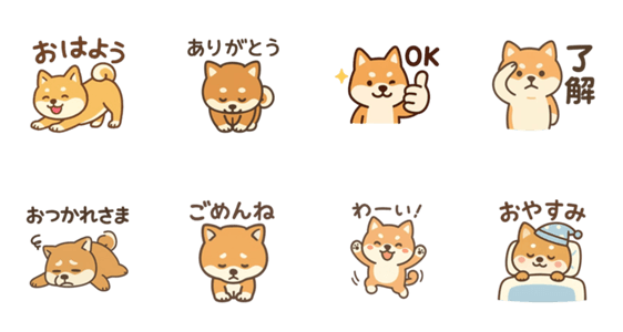 毎日のチャットに使える、かわいい柴犬のスタンプ8個セットです。「おはよう」から「おやすみ」まで、基本的な挨拶とリアクションをすべてカバーしています。
