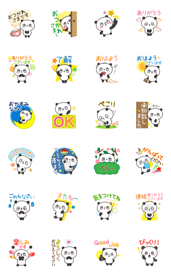 | スタンプ説明 | まっすぐ気持ちが伝わる“素直なパンダ”。毎日のあいさつやリアクションに大活躍! |