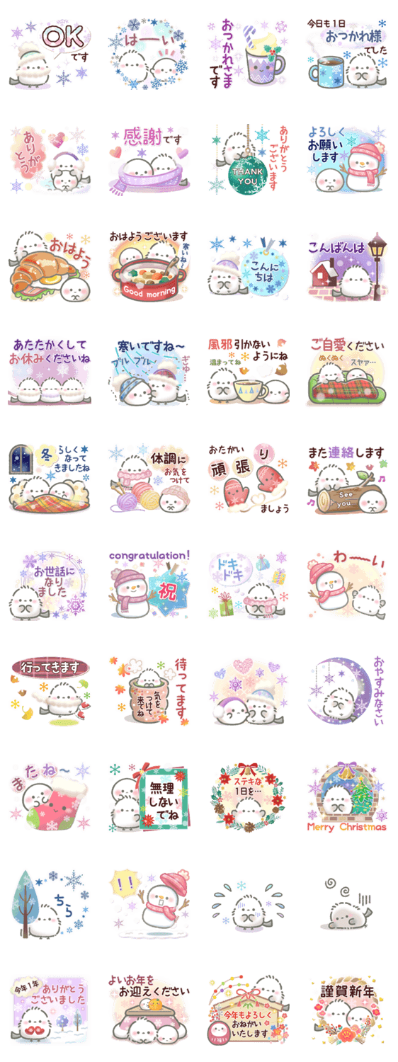 もふもふシマエナガの冬スタンプ登場!⛄️ 「おつかれさま」「ありがとう」など、年末年始にも毎日使える便利な言葉をぎゅっと詰めました。 寒い季節に心温まる癒しを♡