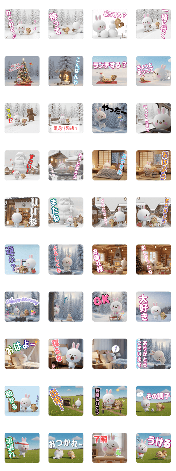 スタンプ 仲良し 日常 コンビ りす うさぎ