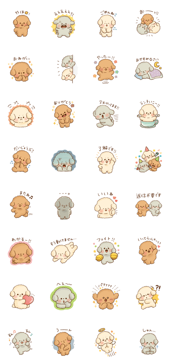 ふわふわもこもこのトイプースタンプ第1弾♡ 日常で使いやすい言葉を集めました♪ (といぷー/トイプー/プードル/ふわふわ/もこもこ/わんこ/犬/わんちゃん)
