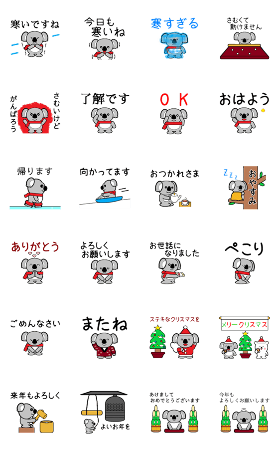 コアラの動くスタンプです。「冬を感じるスタンプ特集」に参加しています。