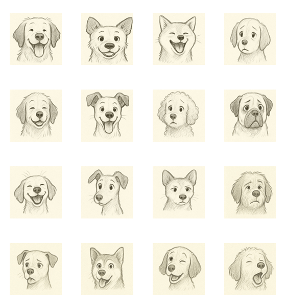 手描き風のやさしいタッチで描いた、表情豊かなわんこのスタンプです。うれしい時も、のんびりな時も、一緒に気持ちを伝えてくれます
