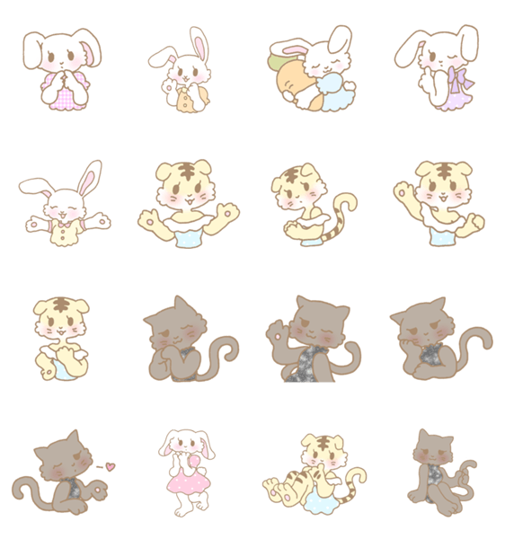 うさぎ、ねこ、とらの女の子のスタンプです。