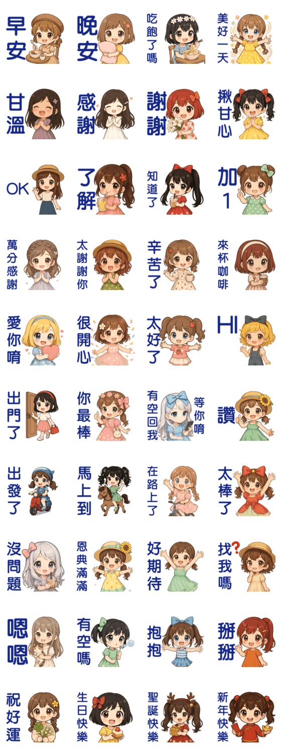 | スタンプ説明 | Sweet Girl Practical Greeting Stickers |