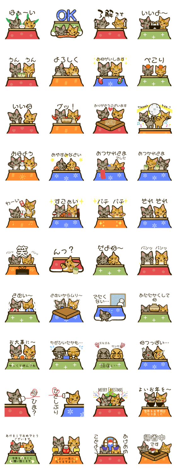 近所で生まれた子猫ちゃんたちをスタンプにしました。茶トラとキジトラの子ニャンコ兄妹の冬スタンプです。# 年末年始 #正月