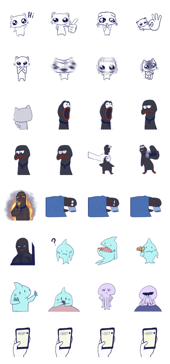 Sadly Cat and Friends by Exshalsia -LINEスタンプマニア