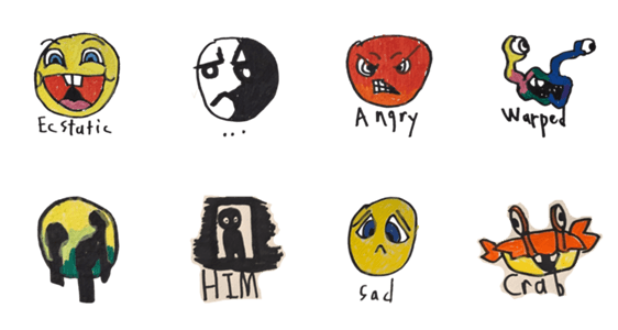 Funny faces for every mood! From happy to weird to angry, show your feelings with wild and colorful expressions!