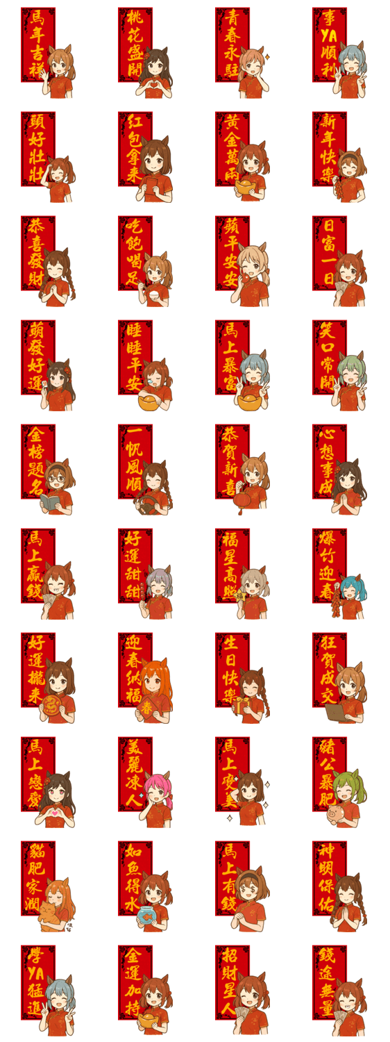 | スタンプ説明 | 幸運、お金、そして黄金 動物のマスコット 漫画とアニメ 彼氏彼女・年配の方への新年の贈り物 春節金襴連句 富の神 美 癒し 麻雀 金塊 少女 ※このスタンプはトークルームで大きく表示されるBIGスタンプです。 |