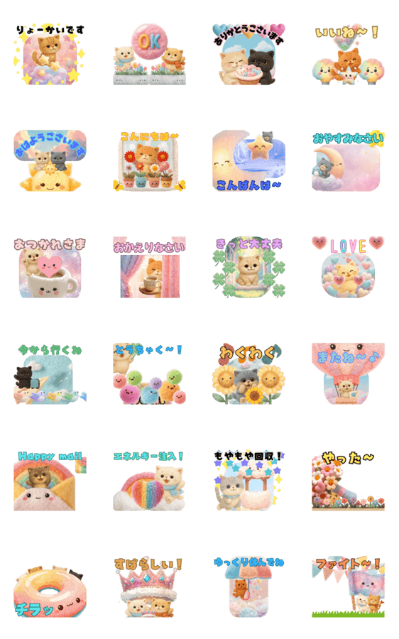 | スタンプ説明 | ふわふわもこもこのエキゾチックショートヘアと、やさしいパステル小物がふんわり動くアニメーションスタンプ♡ 毎日のあいさつ.応援や癒しの気持ちを伝えるのにぴったり! |