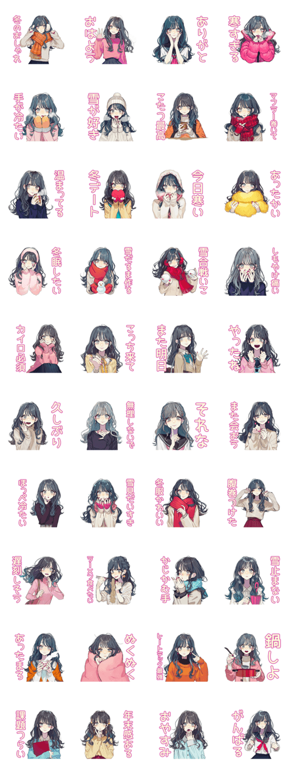 ガーリーで可愛い女子高生の冬スタンプ!普段使いに最適なおしゃれイラストが満載です。