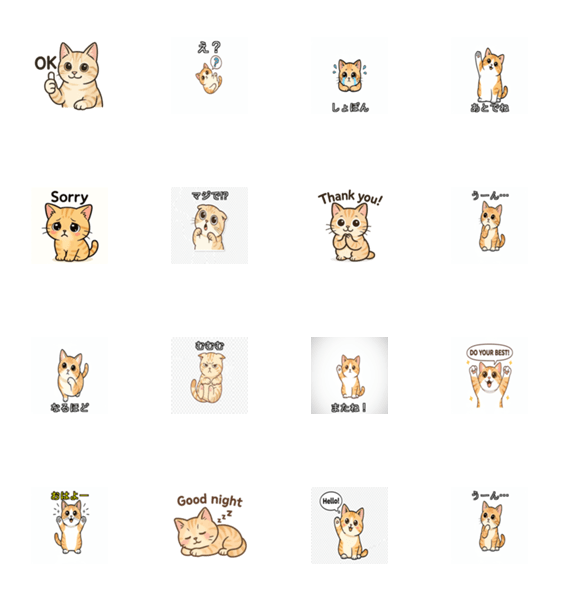 愛猫ひまわりで日常会話に使えるようなスタンプです。