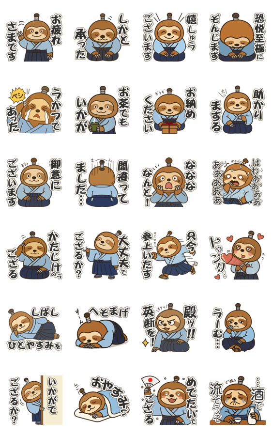 Meet a gentle sloth samurai in kimono! Express greetings, moods, and daily moments with his adorable poses and sleepy charm.