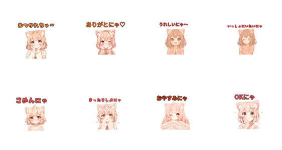 Healing Cat-Ear Girl Stickers -LINEスタンプマニア