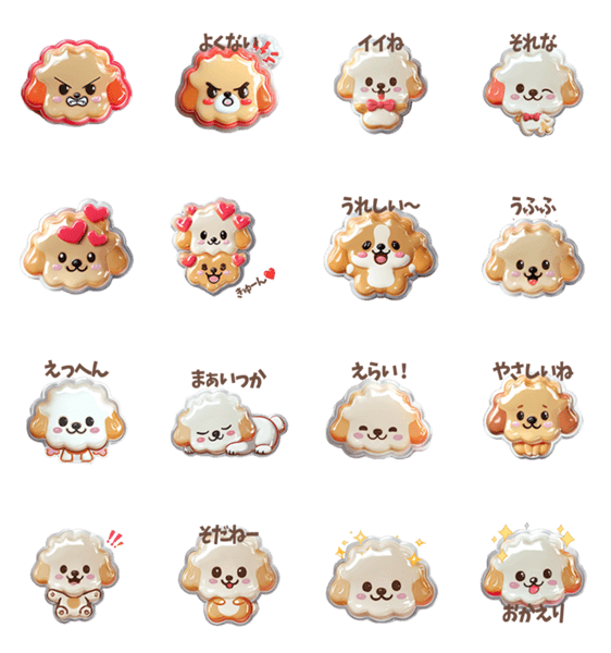 ふわふわのトイプードルがやさしい言葉で毎日を癒します。 友達や家族とのトークにぴったり。 ぷっくりシール風の柔らかいデザインが魅力です。