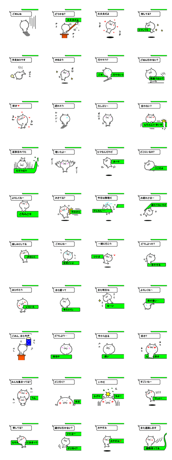白ネコのあいうえお・・・ってるスタンプ