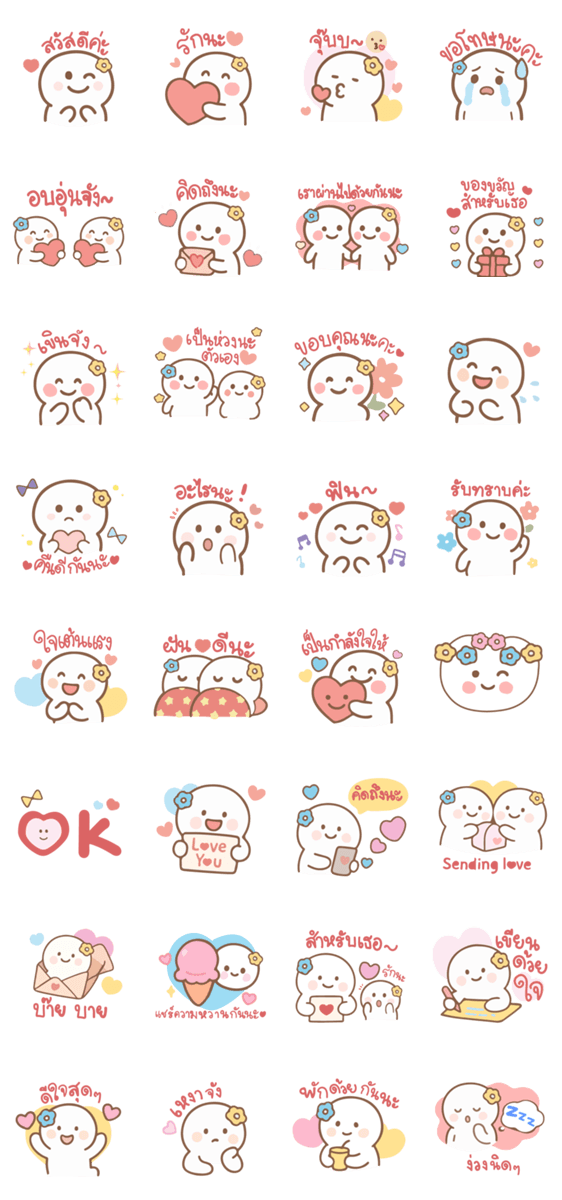 | スタンプ説明 | Warm little mochi express your feelings through messages and small gifts. The warm, soft tones are like the moment you send a message to your crush. |