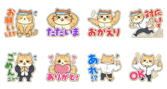 マッスルキャットと日々の生活を楽しみながら活用できるスタンプです