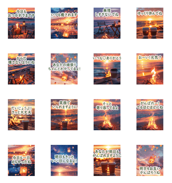背景に炎が揺れる黄昏どき-ランタン焚き火- -LINEスタンプマニア