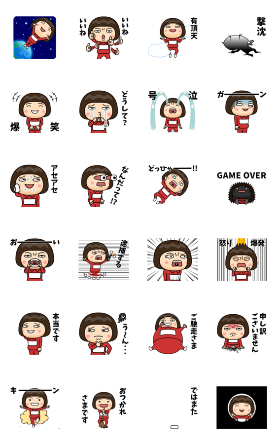 芋ジャージ女子が使う芋ジャージスタンプ第30弾『ギャグ漫画』。ギャグアニメ風の表現満載♪※検索結果が多い場合、名前をカタカナで検索すると見つけやすいよ!