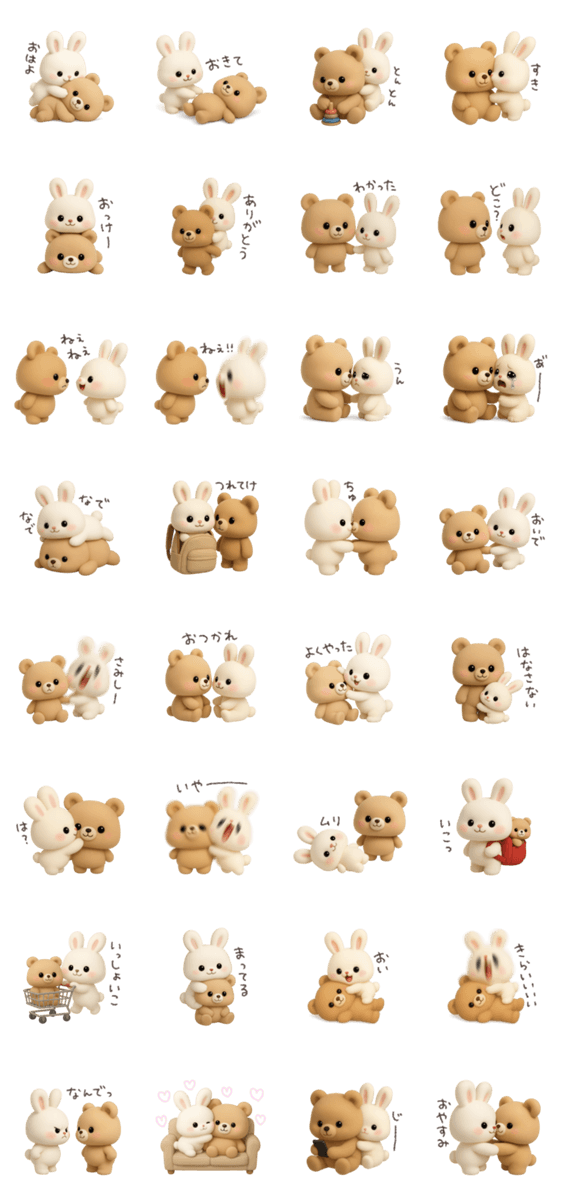わがままうさぎとおっとりクマのスタンプです。