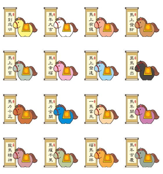 | スタンプ説明 | Let the colorful horses bring you the most sincere congratulations. |