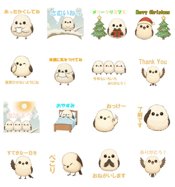 もふもふシマエナガとクリスマスを楽しもう!「メリークリスマス」「さむいね」など、冬の挨拶や気遣いメッセージです!