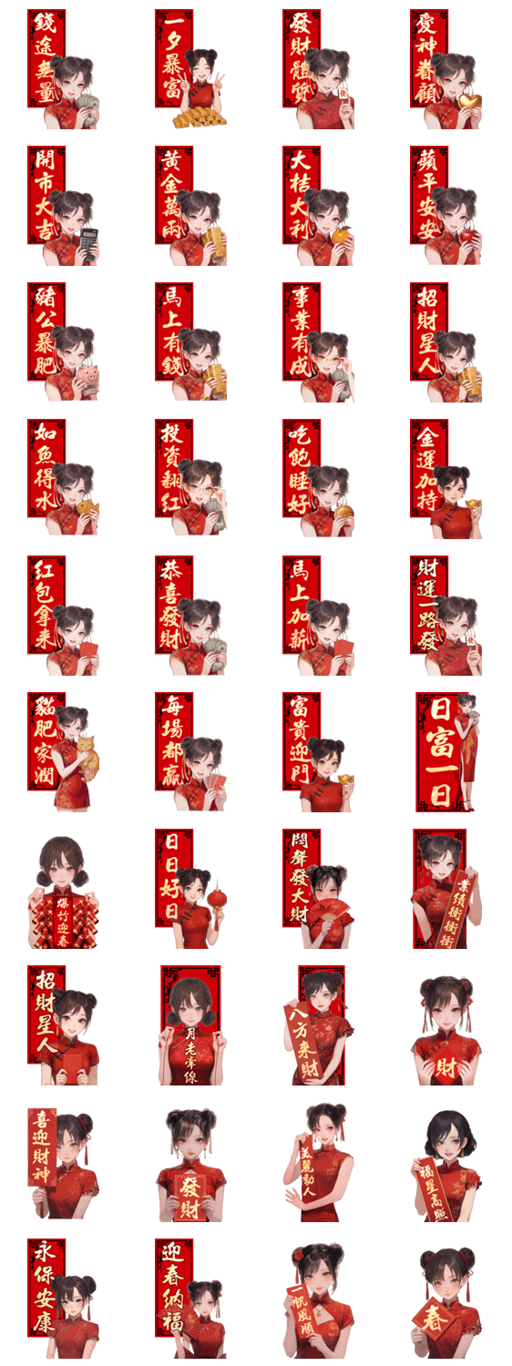 | スタンプ説明 | 美少女女の子、動物ペット猫、麻雀紙幣ドラゴン、神様、アニメーション、新年のご挨拶、福の神繁栄金運、楽しみと癒し、仕事会議、彼氏彼女、父の日、誕生日プレゼント ※このスタンプはトークルームで大きく表示されるBIGスタンプです。 |