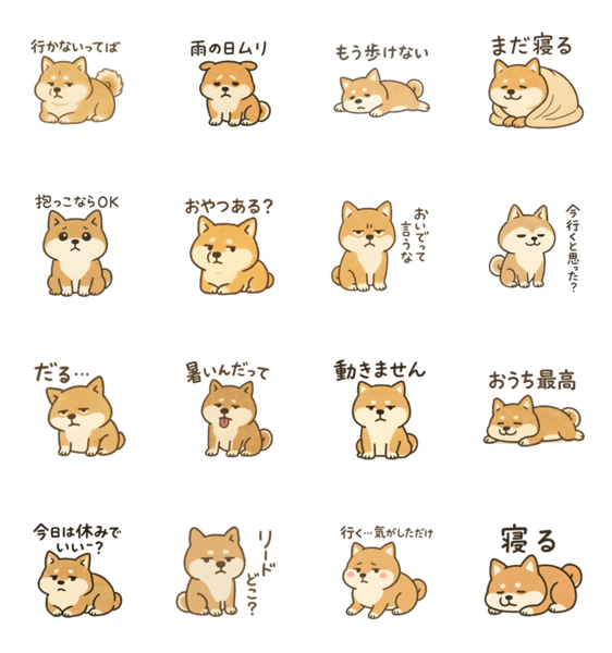 散歩に行きたくない柴犬・ワン蔵の、だらだら日常スタンプ。 寝たり、すねたり、動かなかったり…。 「今日はやる気ゼロ」がゆるく伝わります。