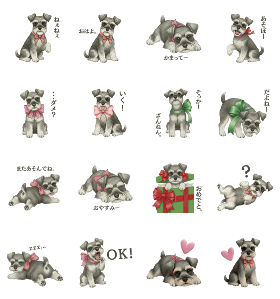 | スタンプ説明 | シュナウザーが好きな人のためのスタンプ。絵本風・クレイアニメ風と2種類のシュナウザーが楽しめます。 |