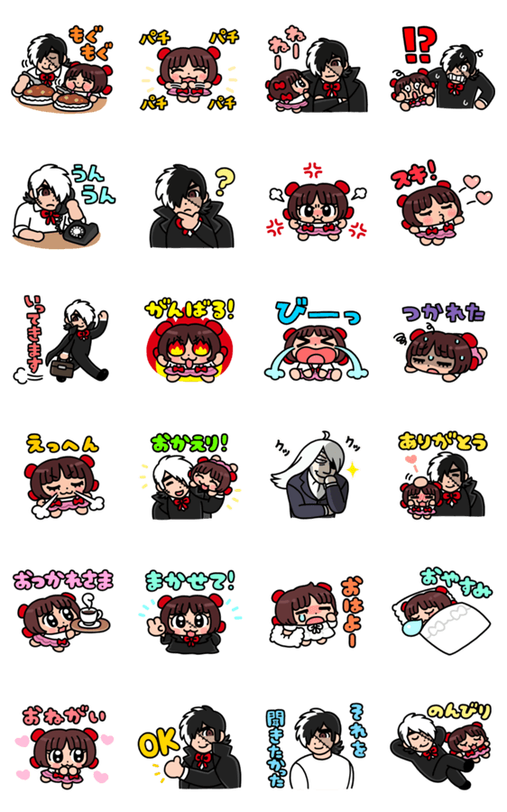 | スタンプ説明 | ピノコたんとブラック・ジャックたんの仲良しスタンプが登場♪あにゃ描き下ろし!ほくほく・モッチリ世界観に癒されること間違いなし♪ |