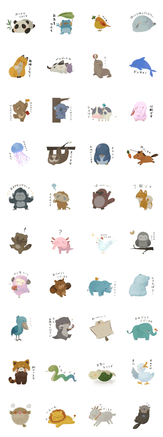 日常会話に優しさや癒しを贈りたい方に。 ゆるっとしたどうぶつたちが、あたたかな気遣いを届けます。