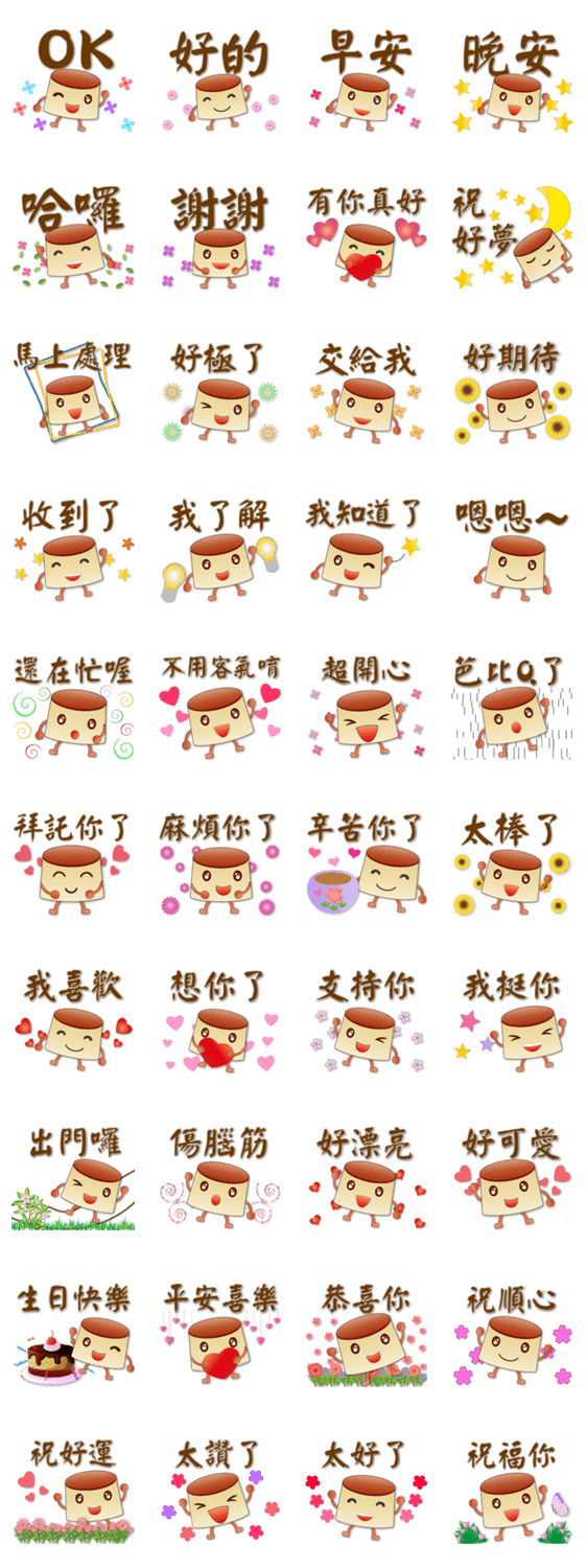 | スタンプ説明 | Cute pudding*practical greeting stickers |