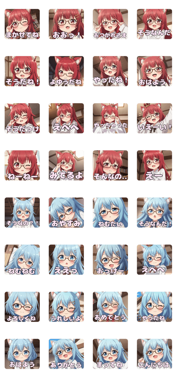 ラウン眼鏡スタンプ(あかみ&ありさ)