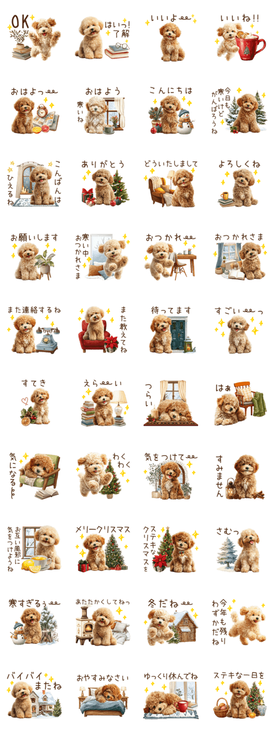 もふもふトイプードルの冬ごあいさつ -LINEスタンプマニア