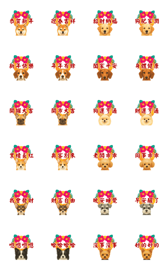 | スタンプ説明 | 新年あけましておめでとうございます!縁起が良い.和風.花輪、かわいい!柴犬、ゴールデンレトリバー.ビーグル.コーギー.プードル.チワワ.春節.金持ちになる.実用的。 |