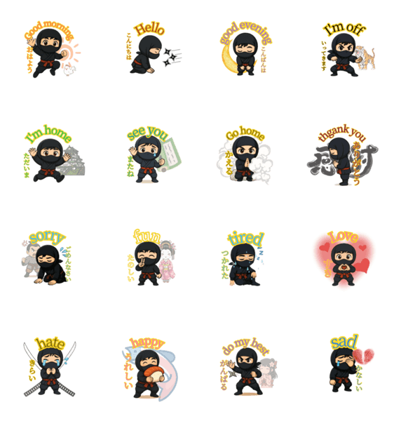 | スタンプ説明 | Cute ninja Kome-maru brings everyday expressions in a fun and friendly way. Perfect for learning simple Japanese and sharing emotions with friends! |