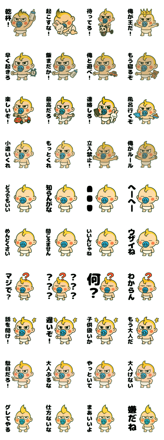 | スタンプ説明 | 憎めない「ふてぶてしい赤ちゃん」と一緒にコミュニケーションをどうぞ! |