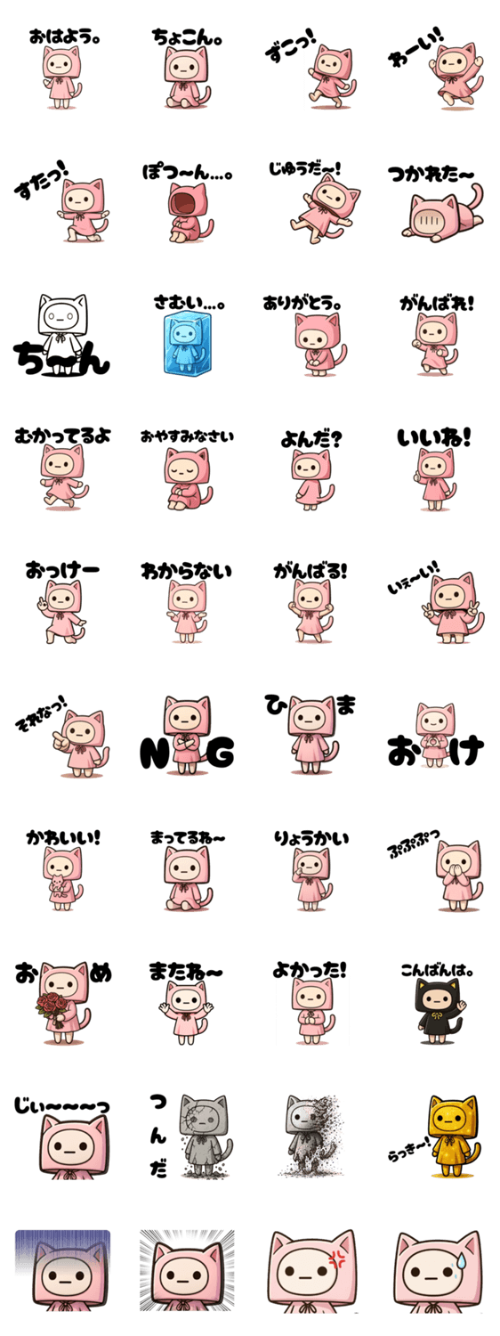 スタンプ説明 猫の被り物を被ったワンピースのゆみちゃん❤︎