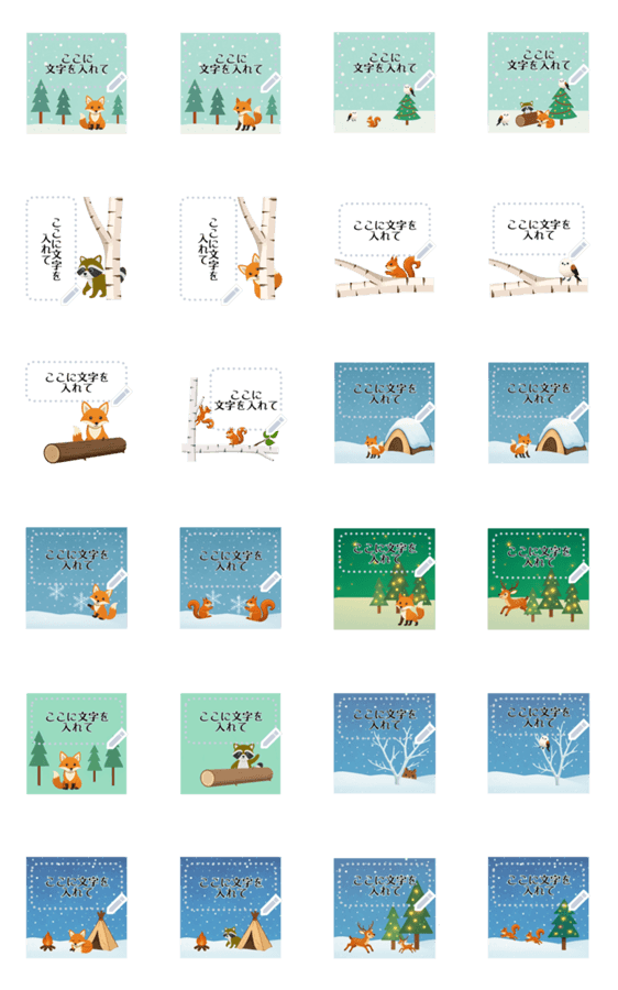雪が降る森の動物メッセージスタンプ 冬 -LINEスタンプマニア