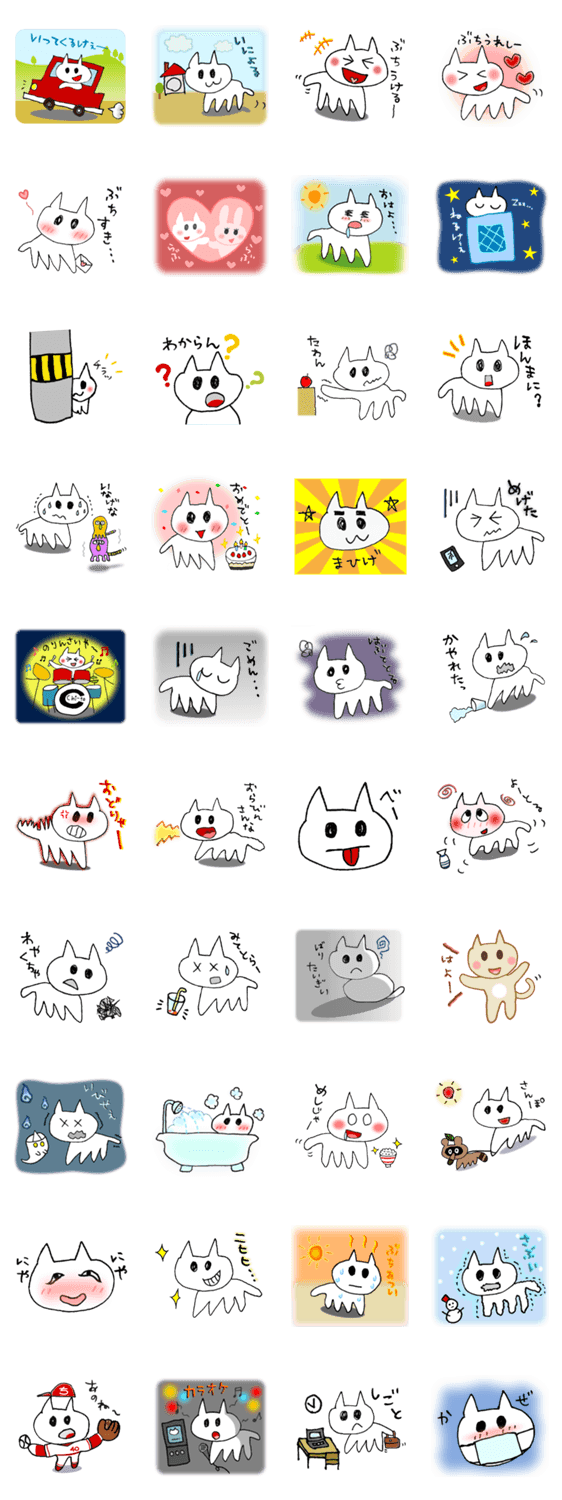白ネコのあいうえお・・・ってるスタンプ