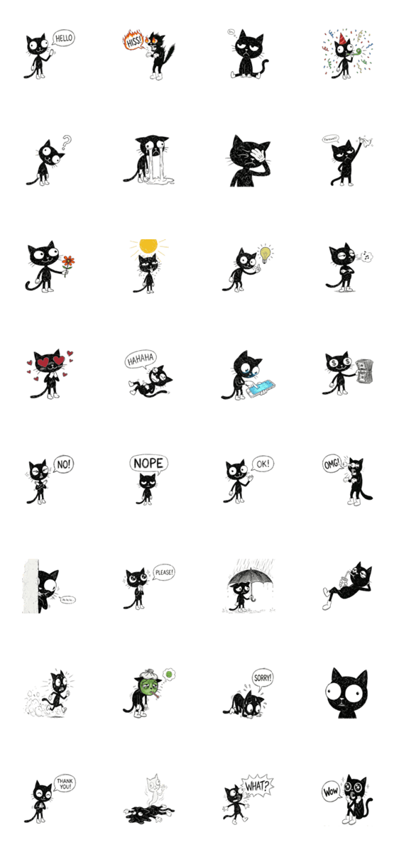 | スタンプ説明 | a noodle-bodied cat with absolutely no thoughts behind those giant bulging eyes. |