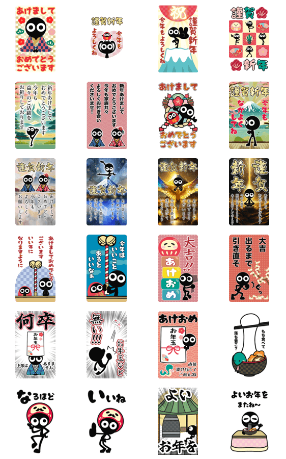 ⚫︎大きい!モノクロ人間◎お正月!(再販) -LINEスタンプマニア