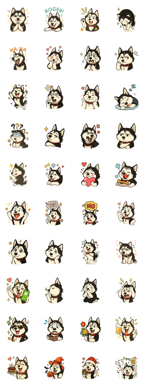 Husky Hype: Full-On Expressions! -LINEスタンプマニア