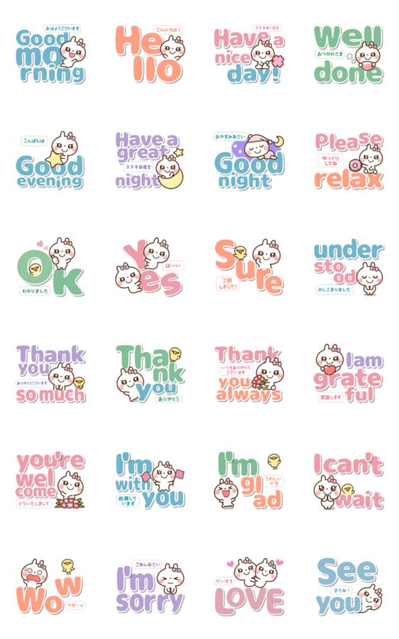 「プチ耳BABY」のおしゃれで見やすい「でか文字」の「英語&日本語」版スタンプです♪ 恋人や友人、家族との日常会話で使いやすい敬語を集めました♬