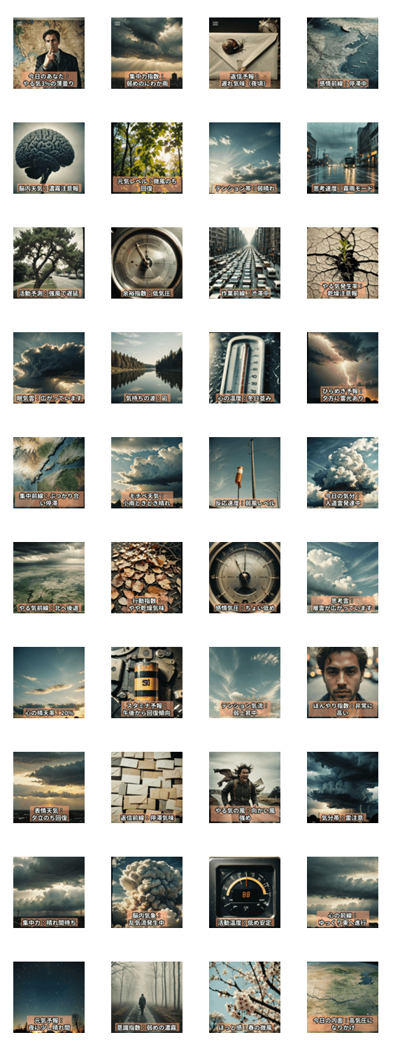 気分をお天気風に表現できる、日常で使いやすいスタンプ。