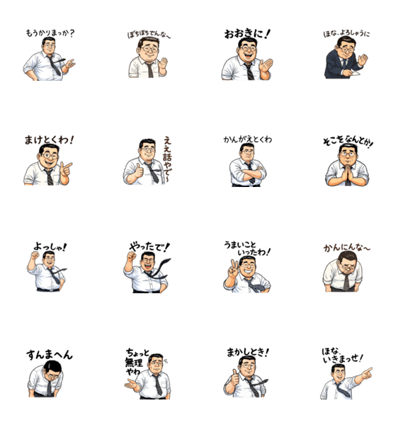 大阪のおっちゃんが関西弁でビジネストーク!商談や取引先とのやり取りに使える親しみやすいスタンプ。挨拶から交渉、謝罪まで、関西流のコミュニケーションを楽しもう!