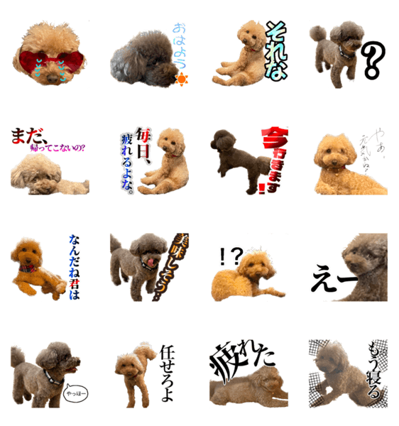 CLIVE公式キャラクターのトイプードル、クララ(ブラウン)とイブ(アプリコット)のスタンプです。
