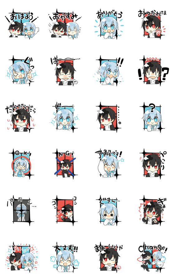 「おいてけぼりの僕達は、」の潾と憐のスタンプです。