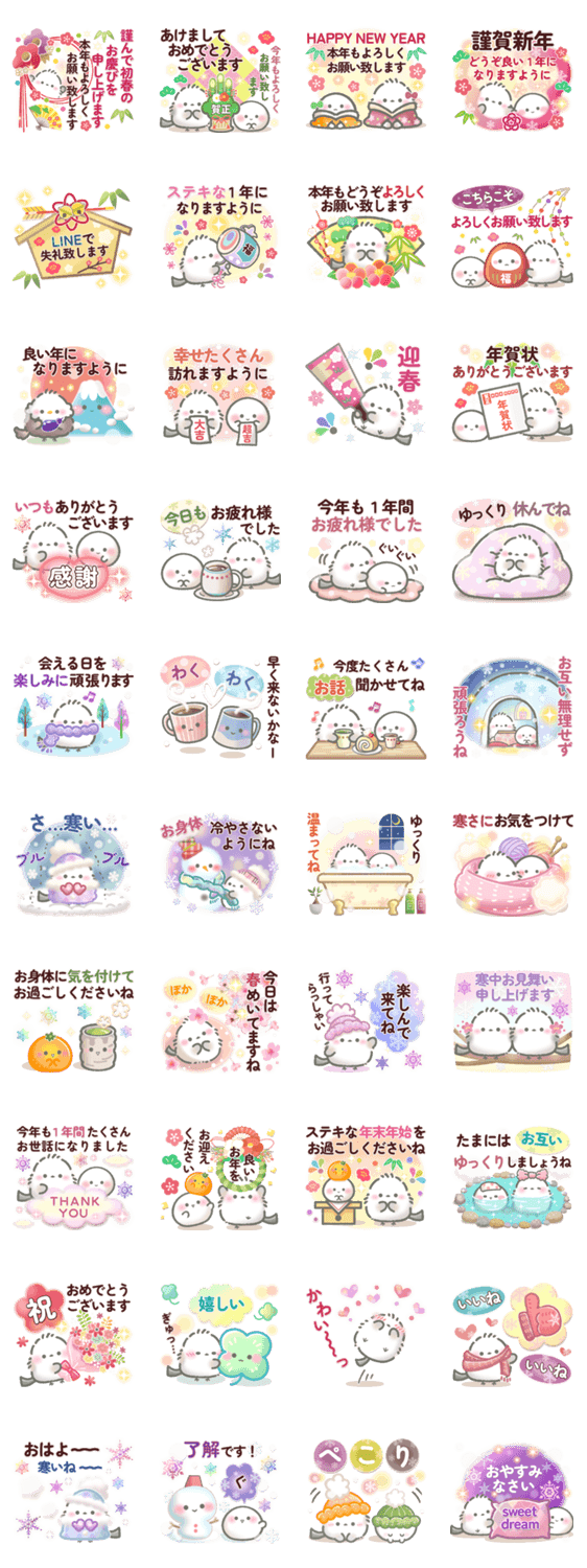 ふわふわ可愛いシマエナガの冬スタンプ❄️年末年始やお正月の挨拶に毎年使える便利なセットです。あけおめや日常メッセージもたっぷりで、寒い季節にほっこり癒されます⛄️